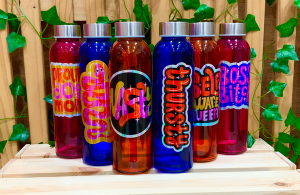 Take care not to scrape the vinyl design when washing. Do not submerge in hot water. Most importantly, I hope you enjoy your SAUCY PUPS bottle!