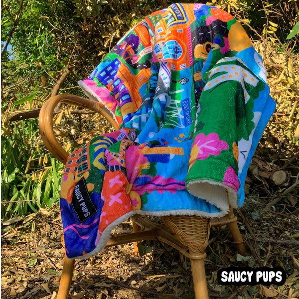 A super-soft illustrated blanket, backed with an incredibly fluffy sherpa lining. These large, snuggly, blankets have to be felt to be believed.