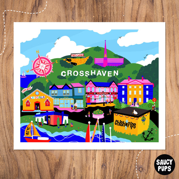 Crosshaven is a stunning little fishing village in Cork, Ireland. Growing up, I used to go to the funfair, get salty chipper chips and get ice-cream there. It always feels like you are on holidays when you visit. The atmosphere is so relaxed and happy there. This illustration would be a great way to remember fun childhood days spent in Crosshaven.