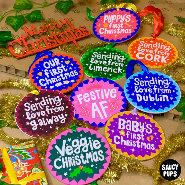 Sending Love from Dublin! A bright, colourful Christmas Decoration for proud Dubliners all over the world! Nice and light for posting in a greeting card too! Let your loved ones know you are thinking of them. ❤️