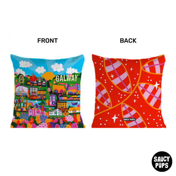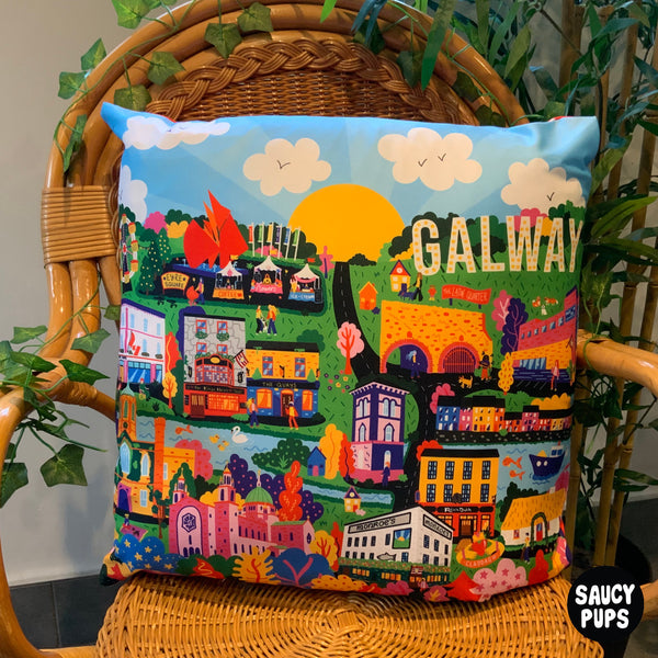 Comfort in Colour ❤️ I am literally in love with these cushions! They are the snuggliest, most colourful cushions in the world. Custom printed, super-soft fabric shows off the glorious colour of the illustration beautifully. Packed with all the iconic Galway landmarks.