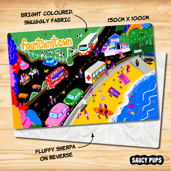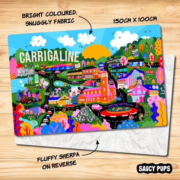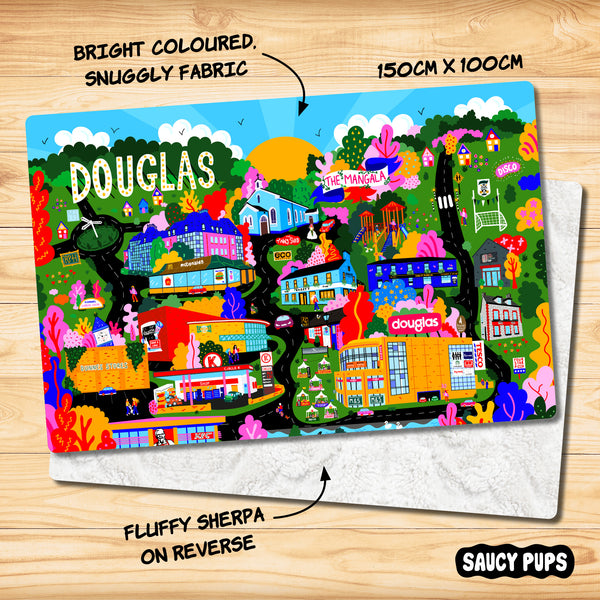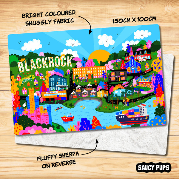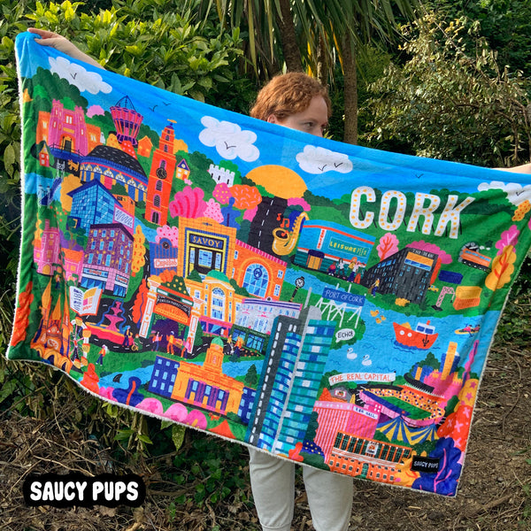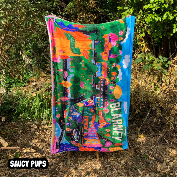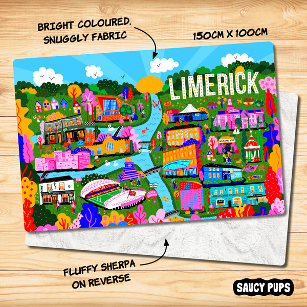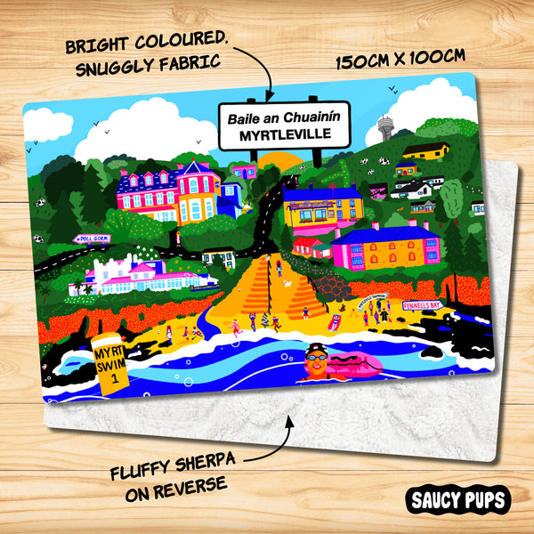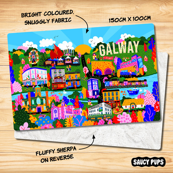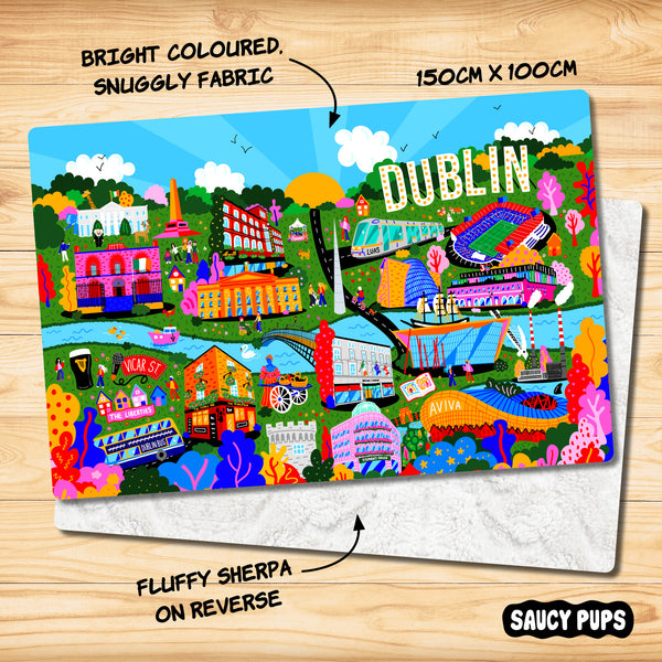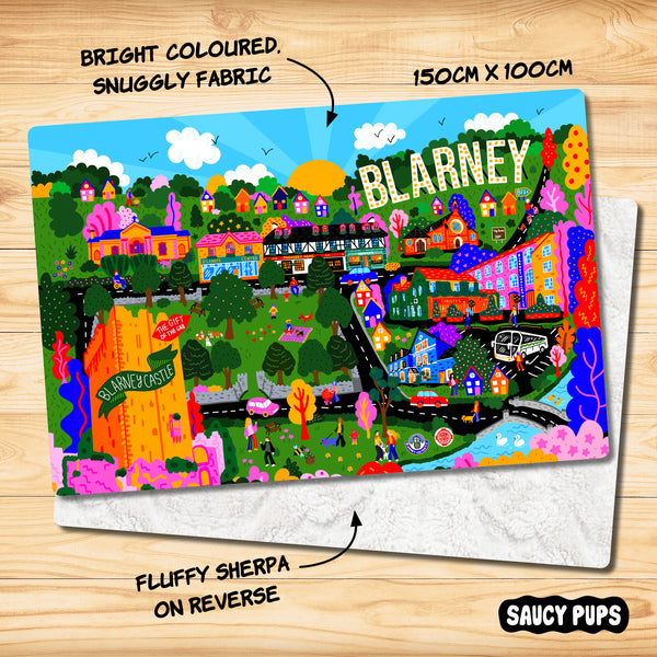 Cosy Sherpa lined, fluffy blankets with illustrations of Irish towns and cities!