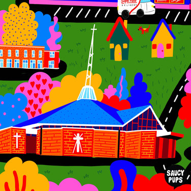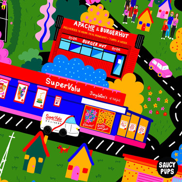 I really enjoyed creating this illustration of Knocknaheeny. I had great help from LinkPoint Youth Centre and the young people of Knocknaheeny. In fact you can see a large mural of this illustration in Linkpoint! Knocknaheeny is full of colour and community and I hope I captured it in this piece.